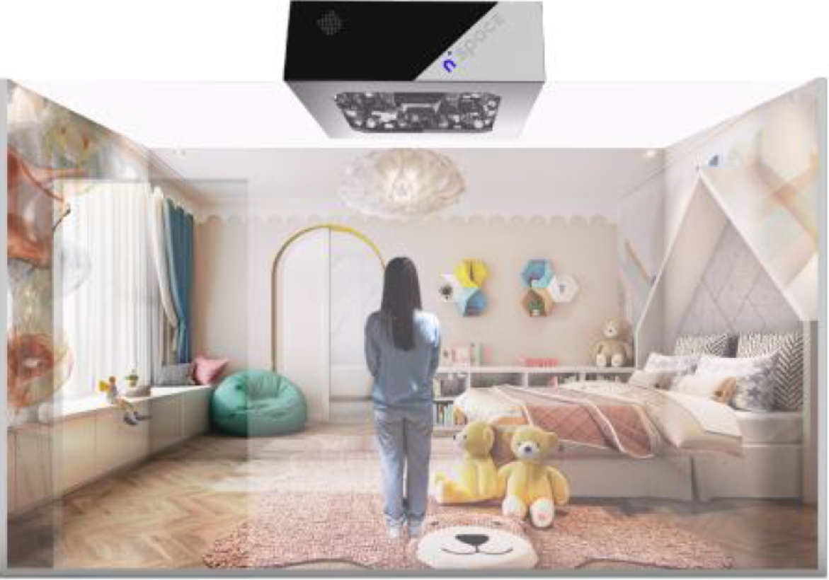 一隅千象自主研发的裸眼3D 互动空间设备系统n'Space,通过 AI 驱动三维一体(应用程序+ 算法+ 硬设),在给进入者带来 震撼视听体验的同时,其特有的场随人动机制,姿态识别、位置 触发、语音交互、外设控制等各类交互选项,能广泛满足客户全 沉浸式交互应用需求,赋能数字仿真或孪生应用。