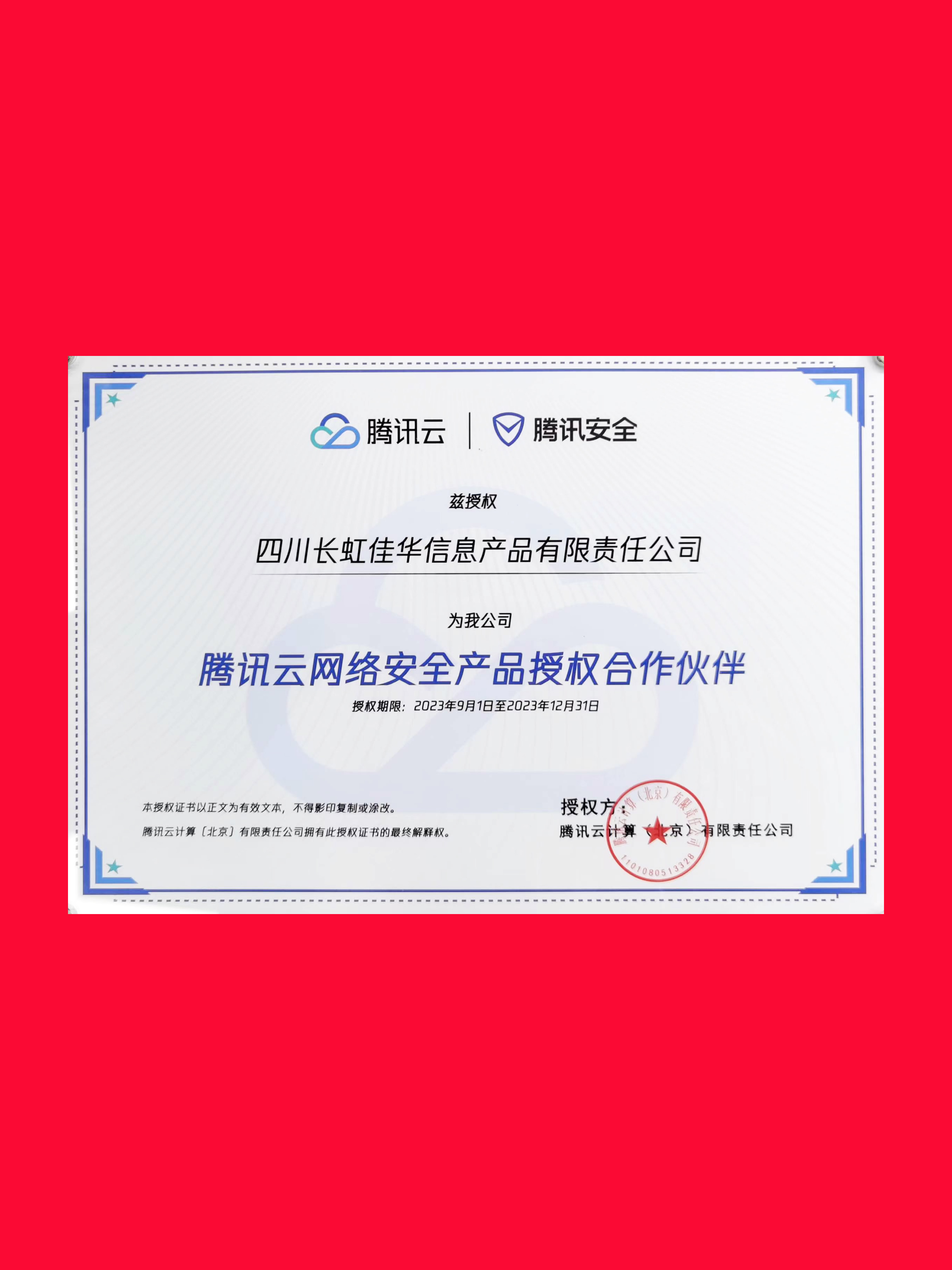 2023年获得由腾讯云颁发的腾讯云网络安全产品授权合作伙伴