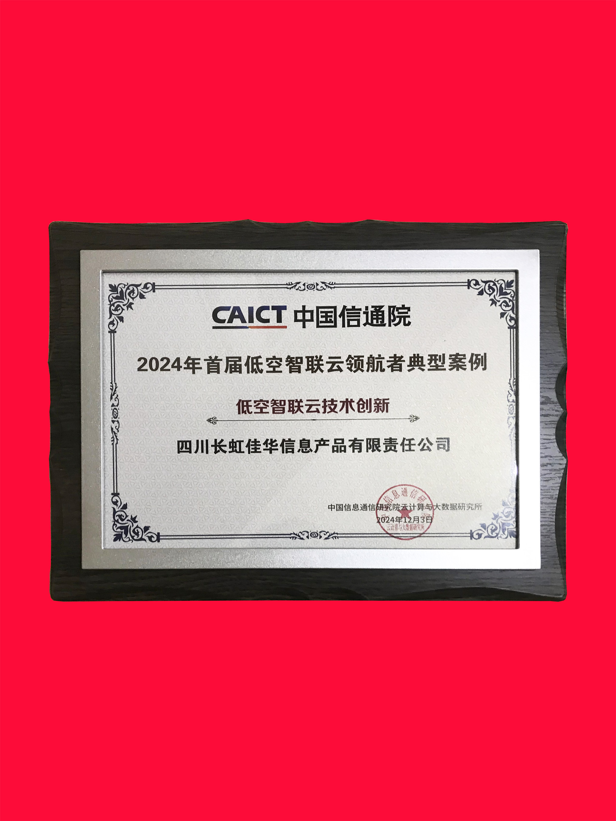 2024年获得由CAICT中国信通院颁发的2024年首届低空智联云领航者典型案例低空智联云技术创新奖