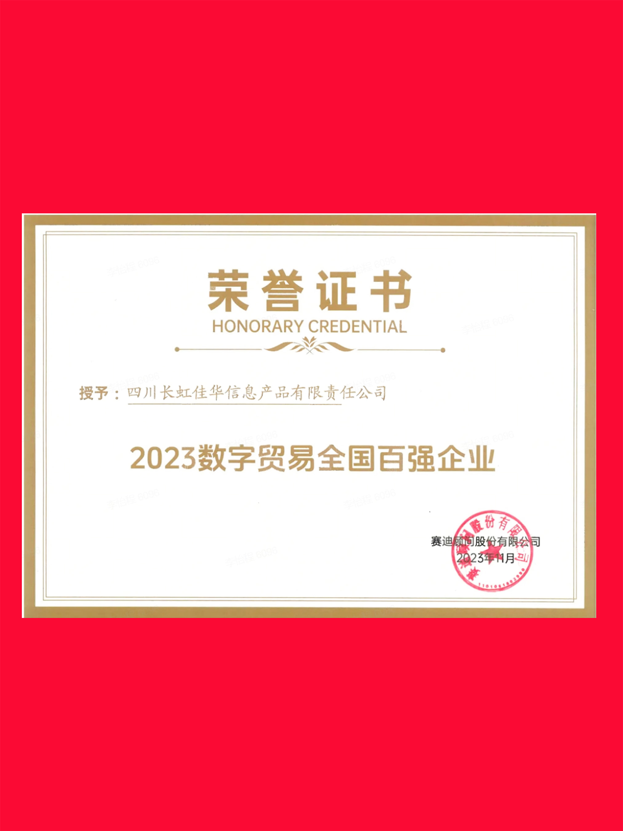 2023年获得由赛迪顾问股份有限公司颁发的数字贸易全国百强企业
