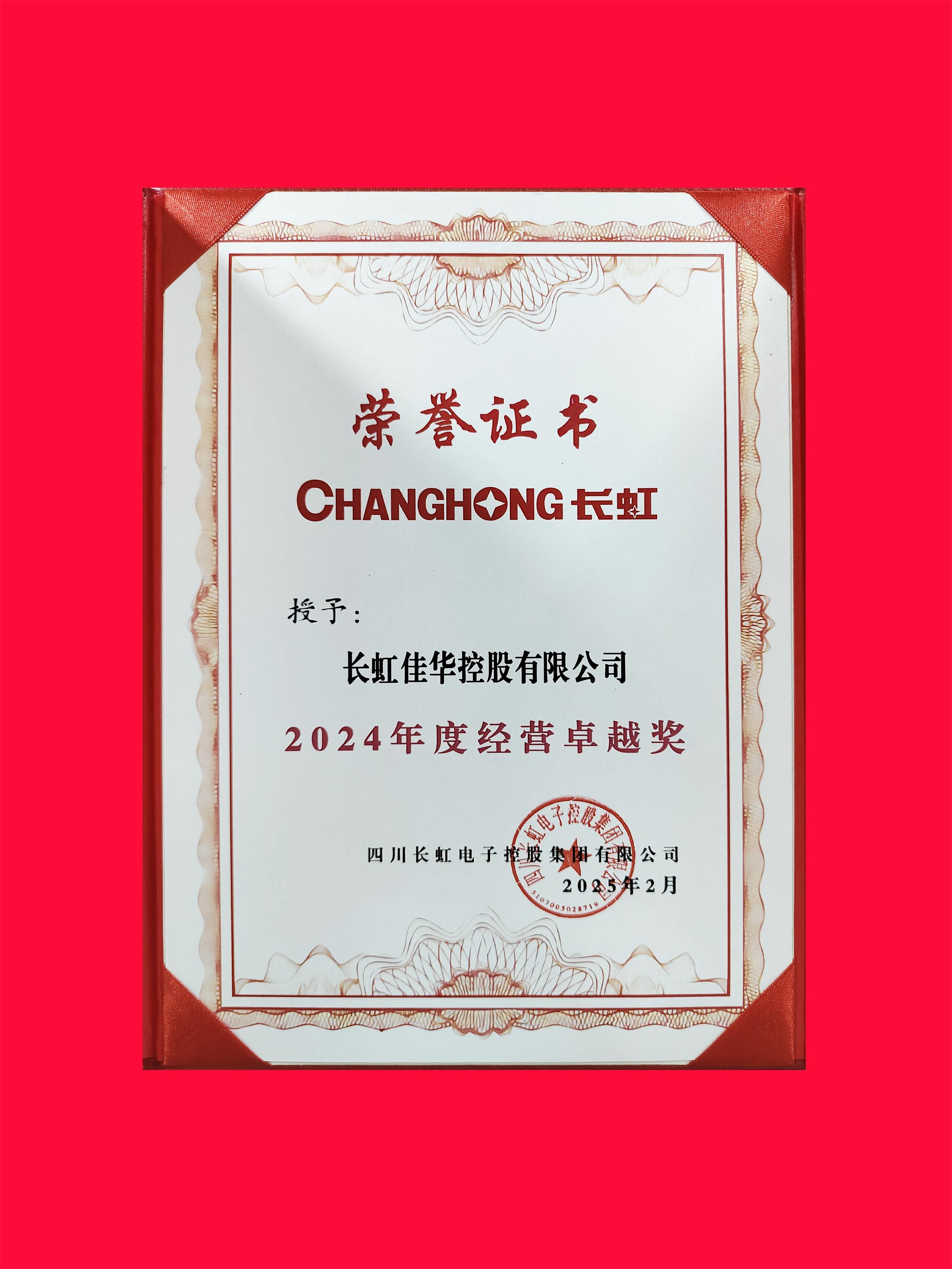 2025年获得由四川长虹电子控股集团有限公司颁发的2024年度经营卓越奖(证书)