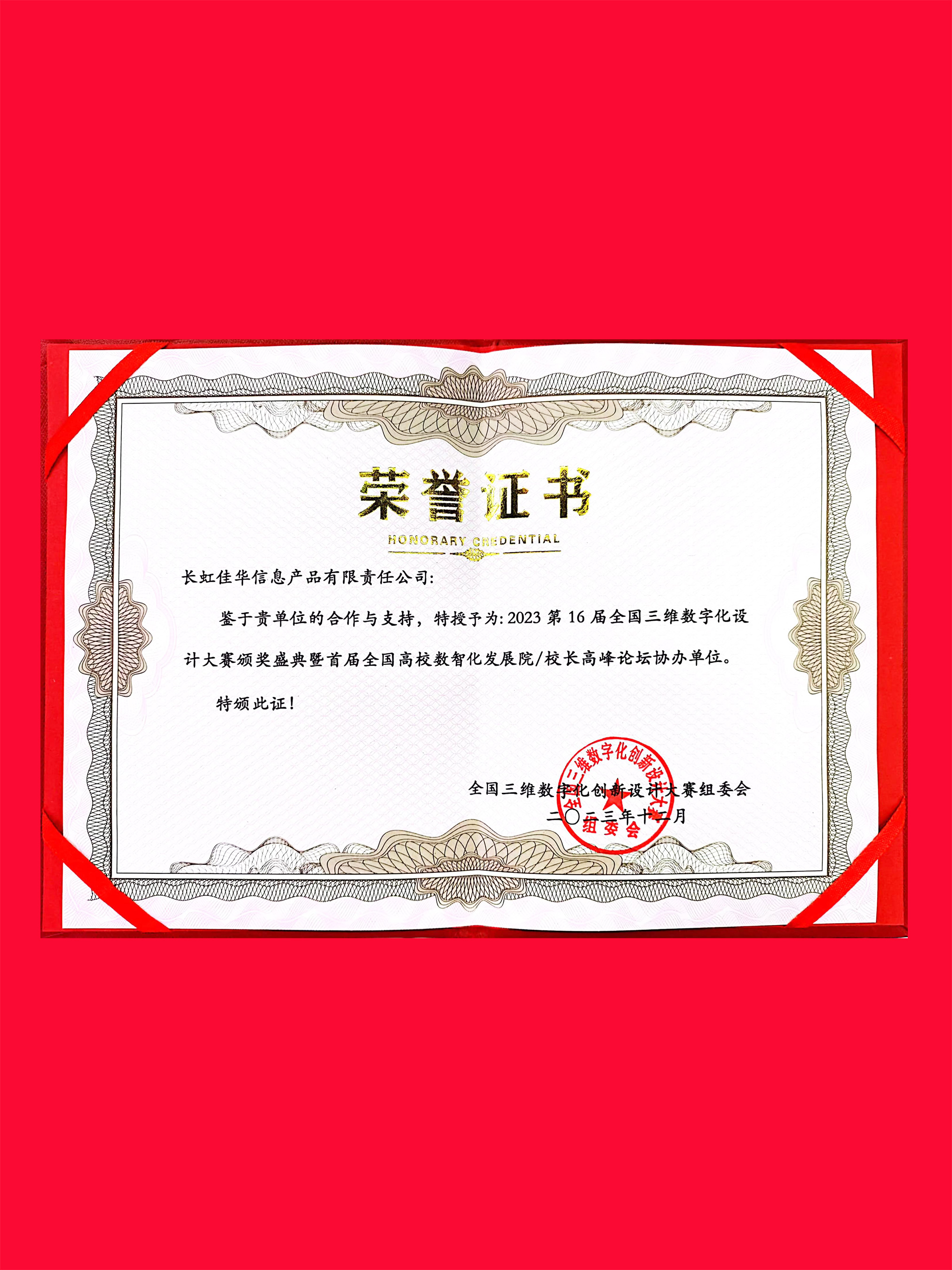 2024年获得由全国三维数字化创新设计大赛组委会颁发的第16届全国三维数字化设计大赛颁奖盛典暨首届全国高校数智化发展院高峰论坛协办单位证书