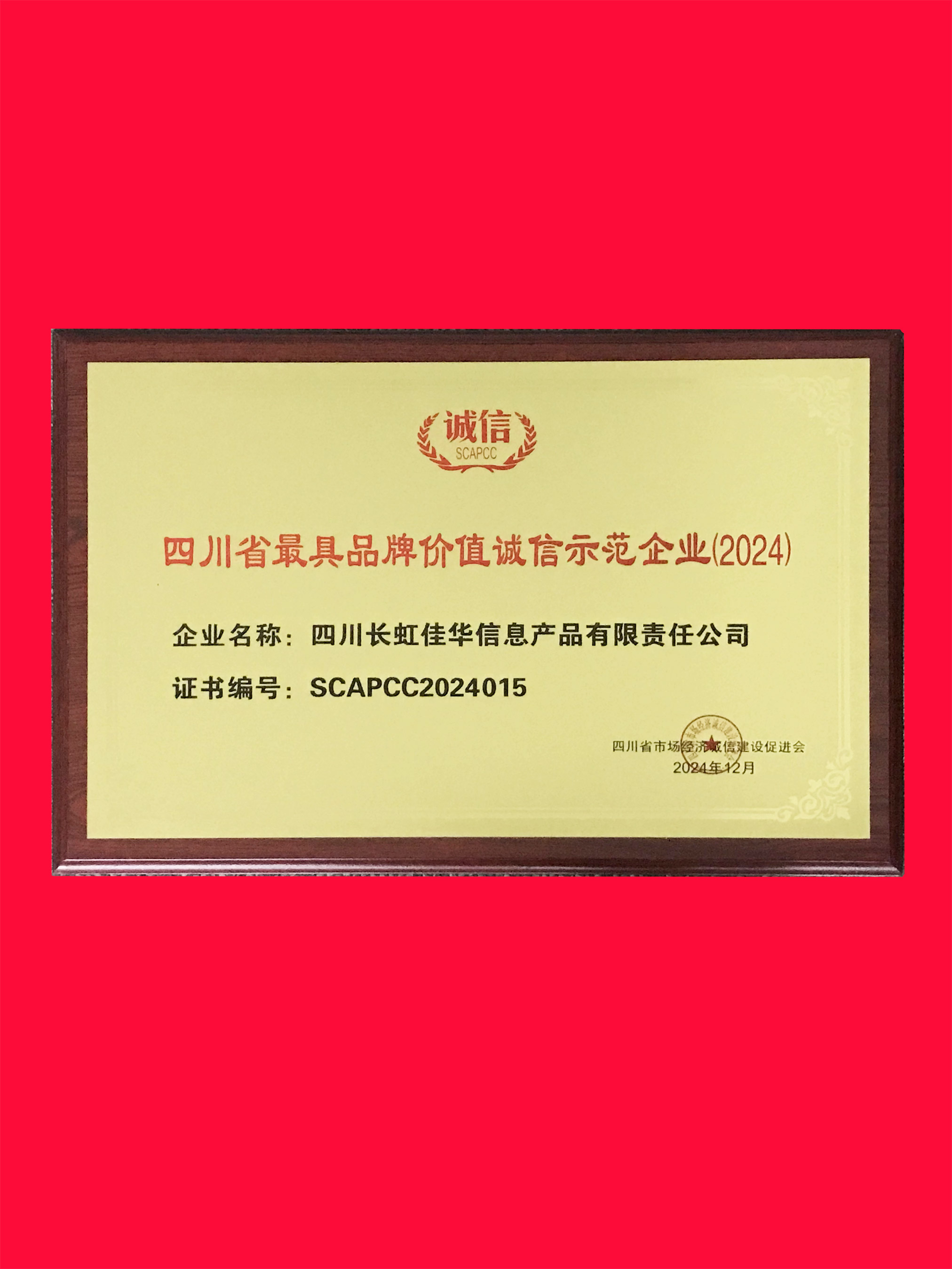2024年获得由四川省市场经济诚信建设促进会颁发的四川省最具品牌价值诚信示范企业奖【信产】