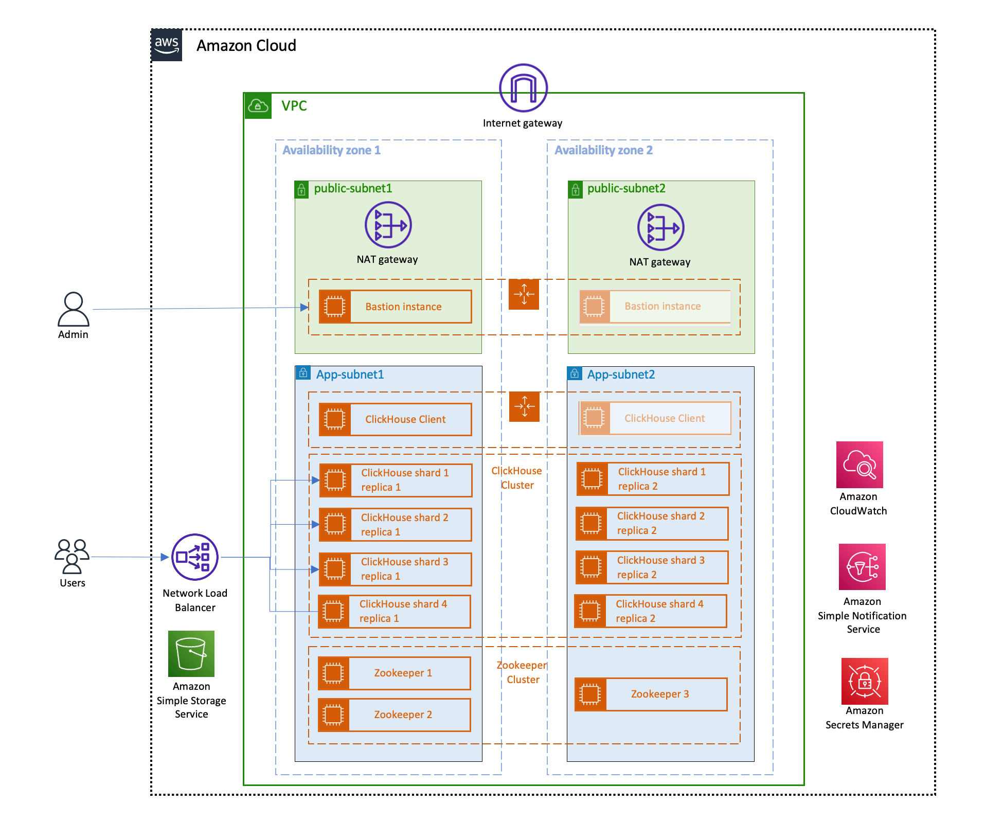 可快速在亚马逊云上部署高可用的ClickHouse集群。