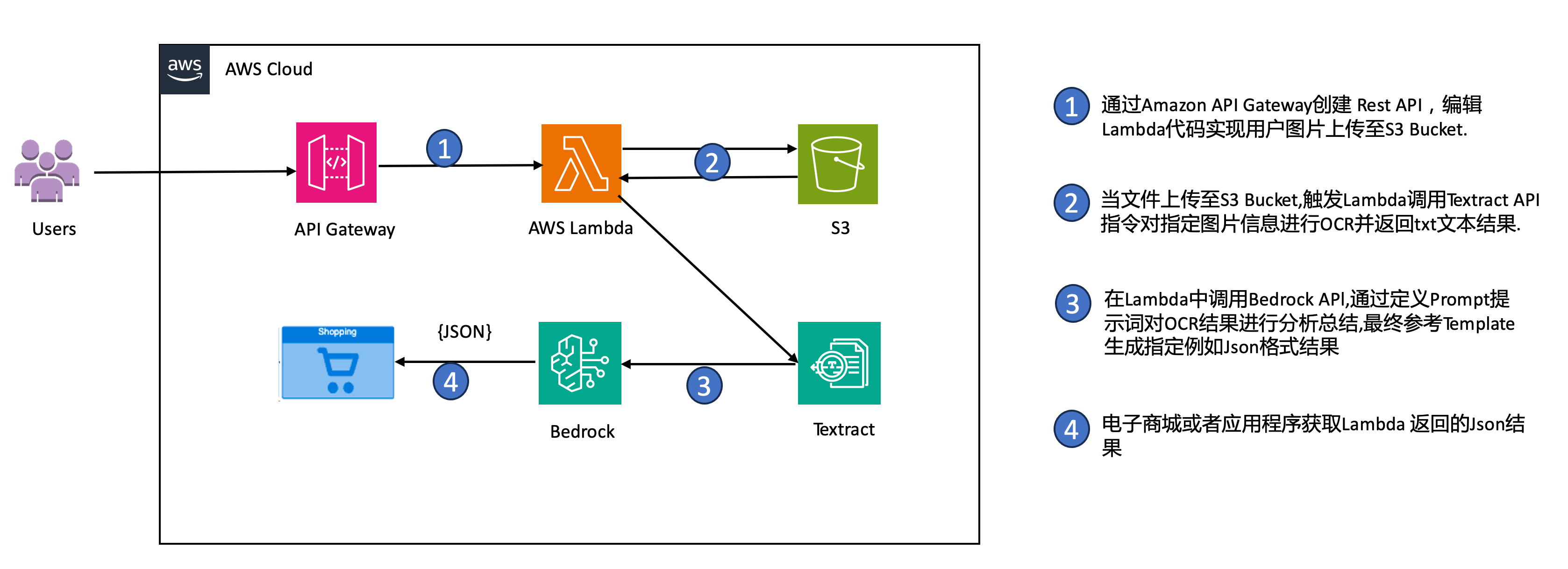 利用 Amazon API Gateway +Lambda +S3 +Textract+ Bedrock 构建了一个无服务器应用,无需进行运维管理。在无固定模板的样例中,相比传统的 OCR 正则匹配方法可以极大地提升准确率。