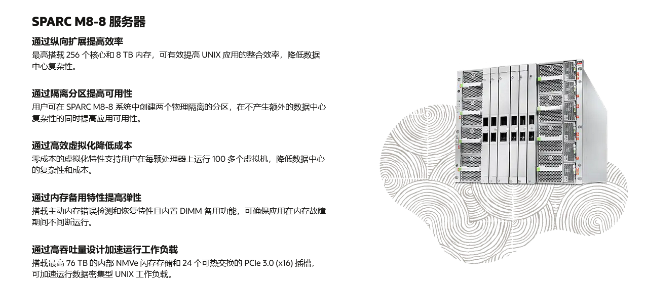 从入门级到高端服务器,满足纵向扩展、横向扩展和边缘等多种部署需求;SPARC 服务器满足企业对经济可靠的 UNIX 解决方案的需求;每台 Oracle x86 服务器都免费附带 Oracle Linux(或 Oracle Solaris)和 Oracle VM。