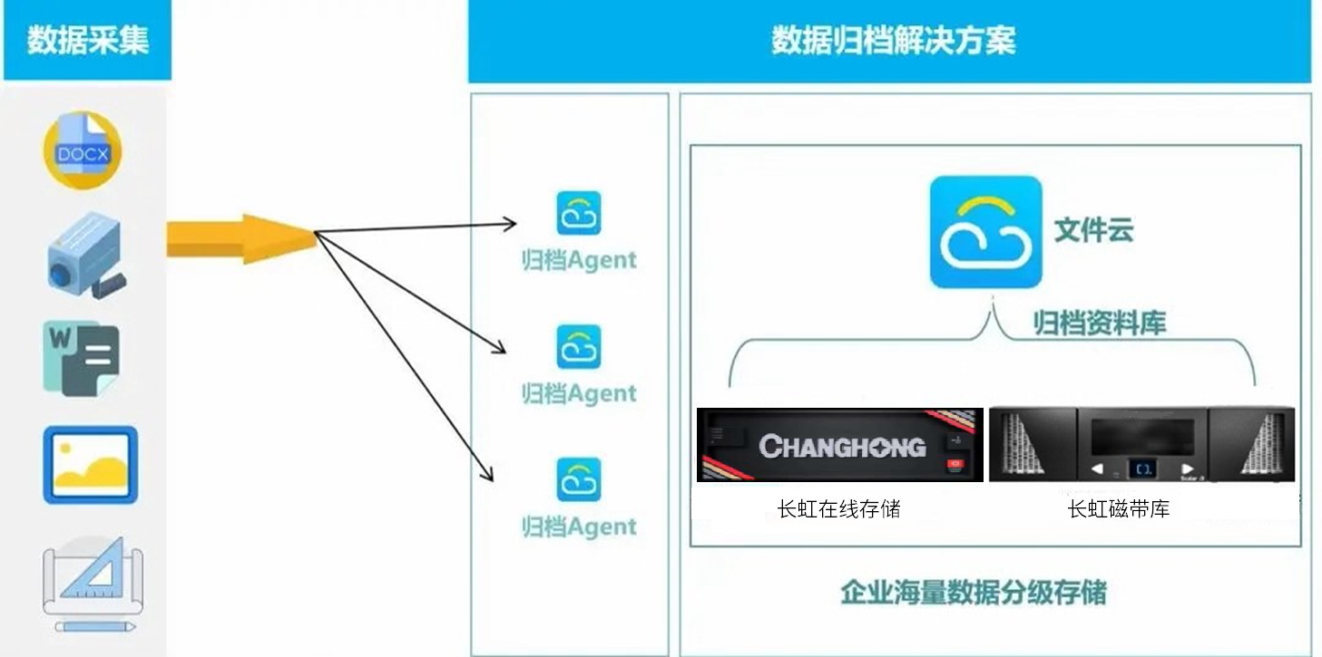 长虹存储归档解决方案结合连用科技文件云归产品采用先进的生命周期管理策略,能够根据文件的活跃程度、重要性以及合规要求,自动将数据分层到长虹存储在不同的介质上。热数据保留在高性能在线存储中以供即时访问,而冷数据则智能迁移至能耗更低的长虹磁带库等冷介质存储中,实现数据在全生命周期内的能耗优化。